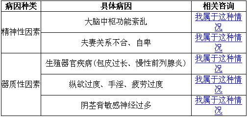 男性成年后如果发生包皮过长、包茎,龟头仍隐藏于包皮之下,龟头粘膜不太与外界接触,基本不会受到摩擦或刺激,就会使得龟头粘膜的神经感觉过于敏感。在性生活时,阴茎勃起后龟头外露,当龟头和阴道进行摩擦、刺激时,会由于龟头粘膜神经的过于敏感而迅速兴奋,造成很快射精而发生早泄。除此之外,导致男性出现早泄的原因还有很多,具体如下: